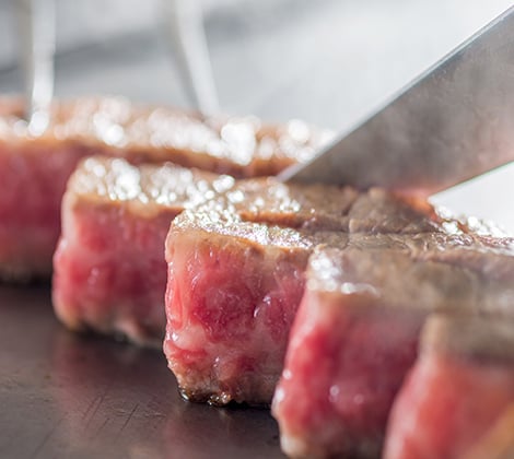 There is a live kitchen area where the chef will prepare your sirloin steak before your eyes,