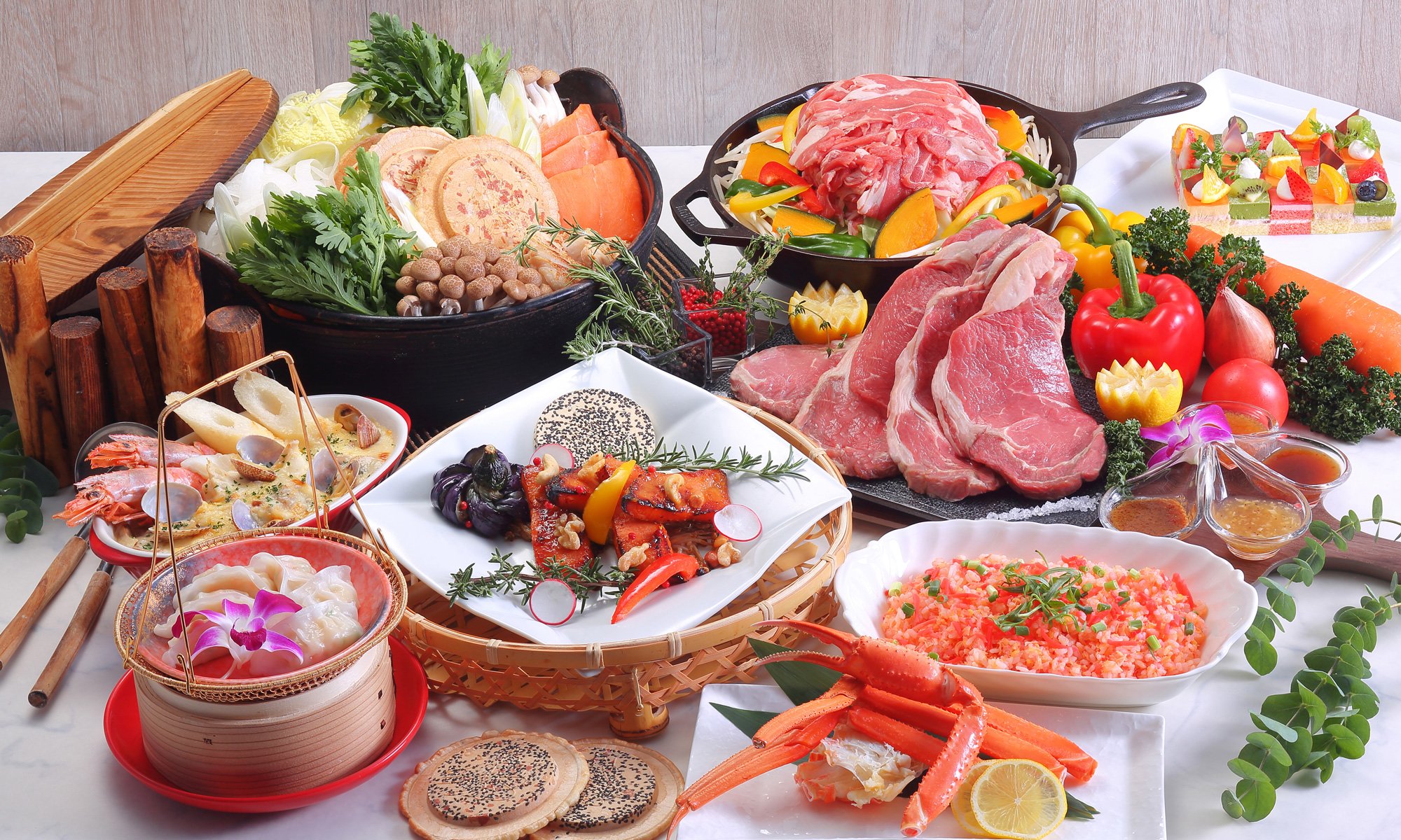 本日のオードブル/ラム肉のジンギスカン/サーモンのメイプル味噌オーブン焼き/豚バラロースト マッシュポテト添え/じゃがバターコーンと塩辛のせ/里芋と玉こんにゃくの芋煮/★殻付き帆立・ホッケ/カニクリームコロッケ/きりたんぽのシーフードグラタン/いぶりがっこと4種のチーズピザ/スープカレー鍋/せんべい鍋/札幌ラーメン/ビーフステーキ 4種のソース/鮭と紅生姜の炒飯/海老海鮮餃子/ミニドルチェ/フルーツ etc.