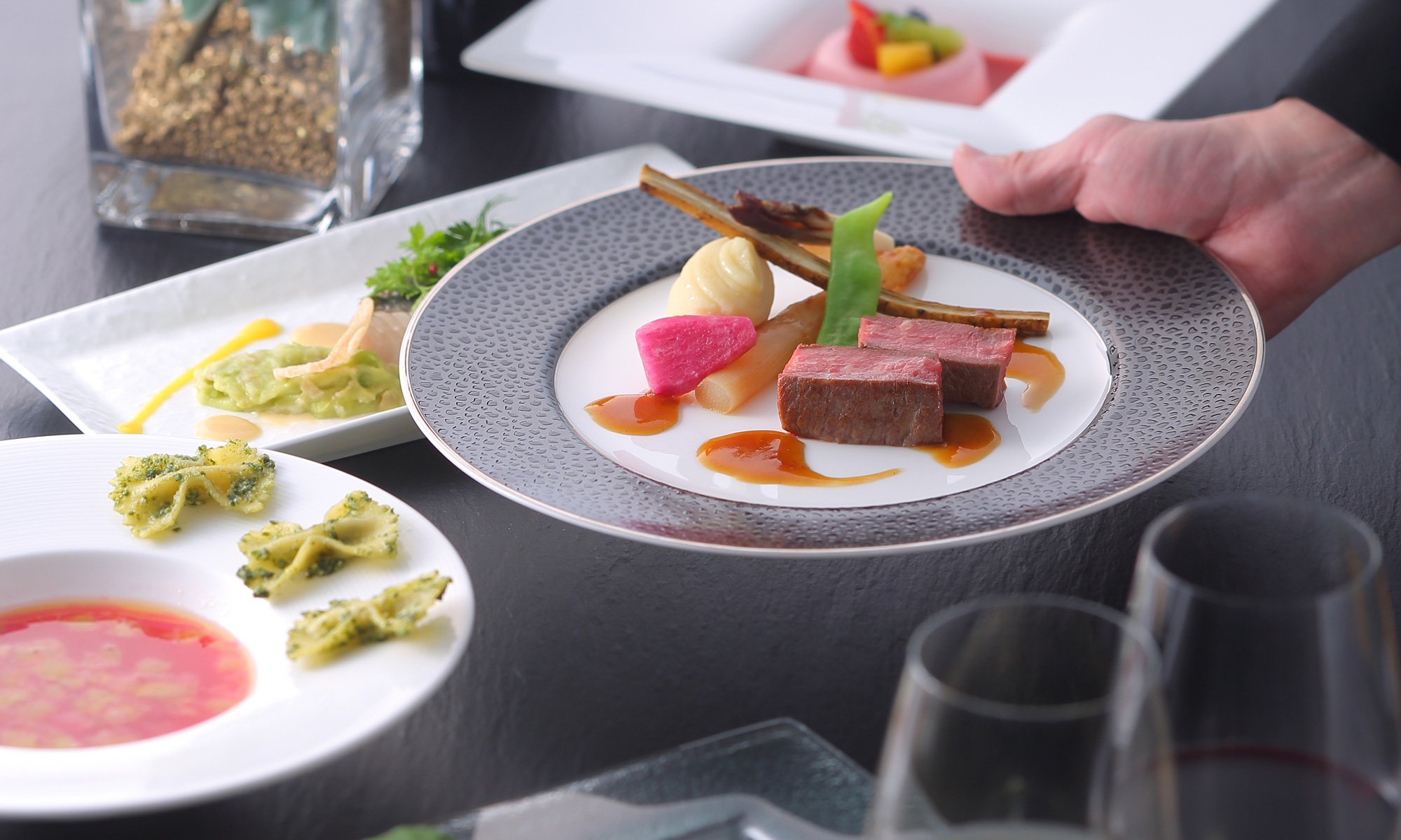 ビュッフェコース ¥4,500~ 野菜とコールミート盛り合わせ/海老カダイフ巻き/気まぐれピッツァ/ホワイトチキンとソフト烏賊のサラダ/柔らかビーフシチュー/野菜のブレゼ/トンロースのピカタ シャスールソース/鮮魚のポワレ ピンク色の白ワインソース/にぎり寿司&巻き寿司/かつおのたたきサラダ仕立て/一口そば又はうどん/海老とトマトの彩り野菜の塩味炒め/痺れる四川風麻婆豆腐/上海焼きそば/デザートヴァリエ etc