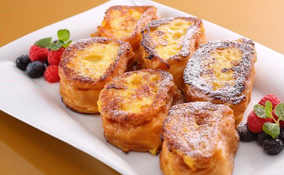 外はこんがり、中はとろけるように柔らかいフレンチトーストを、焼きたての状態でご提供いたします。卵とミルクをたっぷりと染み込ませ、バターで香ばしく焼き上げた一品は、ひとくち頬張ると優しい甘さが広がります。お好みでメープルシロップやフルーツを添えて、贅沢な味わいをお楽しみください。