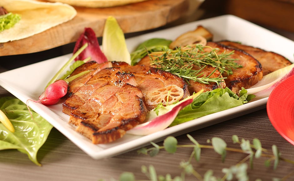 東の匠ならではの、脂と赤身のバランスが絶妙な肩ロースを使用。ジンジャー香る特製ダレに漬け込み、香ばしく焼き上げました。