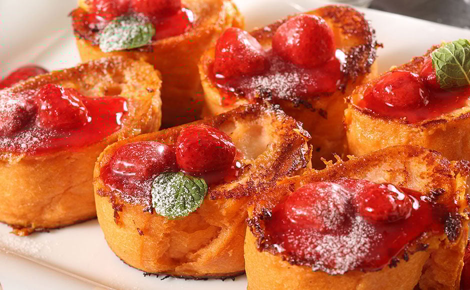 爽やかなオレンジソースと、果肉入り赤ワインベースのいちごソースで、2種の味わいをお楽しみください。
